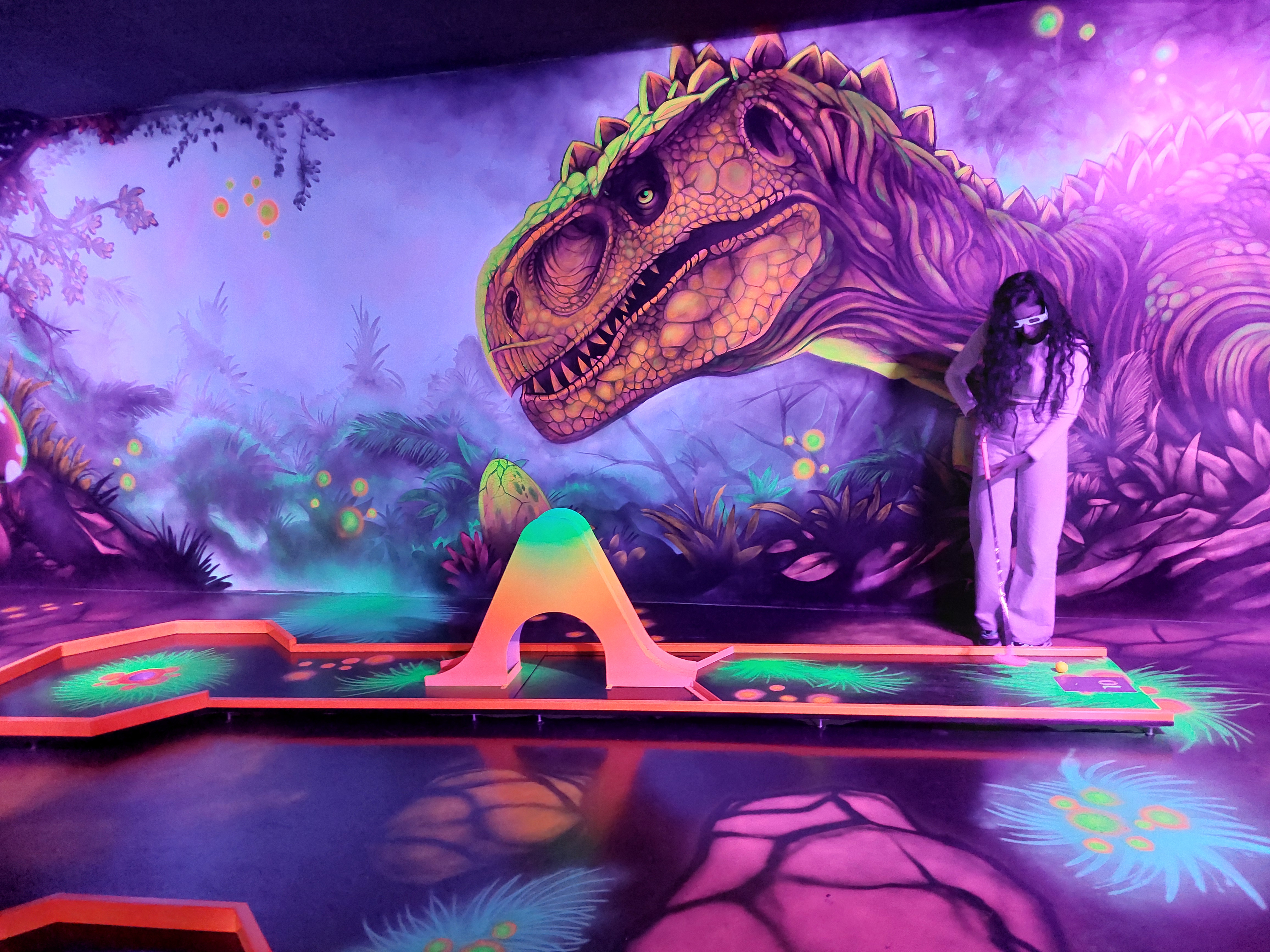 3D Schwarzlicht Minigolf bietet Freunden, Kollegen oder der ganzen Familie ein Erlebnis der besonderen Art. Unser 3D-Schwarzlicht-Indoor-Minigolf auf 18 Bahnen bedeutet Spielvergnügen und Herausforderung pur. Auf 400 Quadratmetern tretet ihr in eine ganz andere Welt ein, die aus Schwarzlicht und Soundeffekten besteht. Geht auf eine Entdeckungsreise zwischen Spiel und Realität und nehmt am besten ein paar Freunde mit.