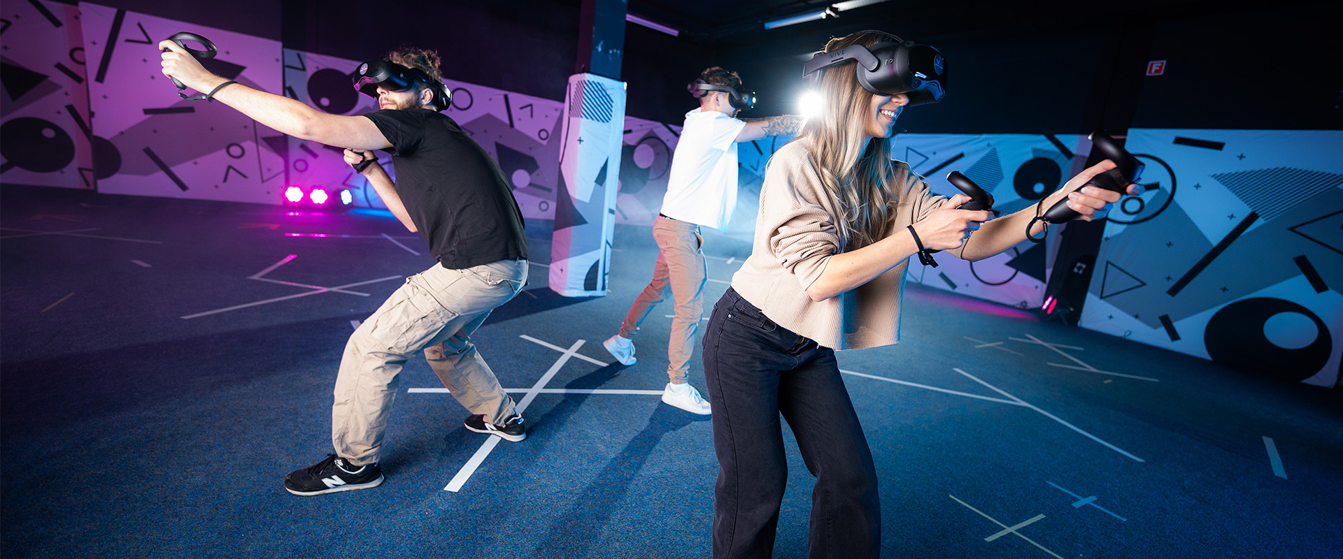 Wenn euch diese Schwarzlicht-Welten noch nicht gänzlich gereicht haben, dann wartet mit unserer revolutionären VIRTUAL ARENA – die grösste Spielfläche der Schweiz und einer der grössten von ganz Europa! - ein immersives Universum, voller Spass und Action, wo bis zu 16 Spielern gleichzeitig agieren können, auf euch.